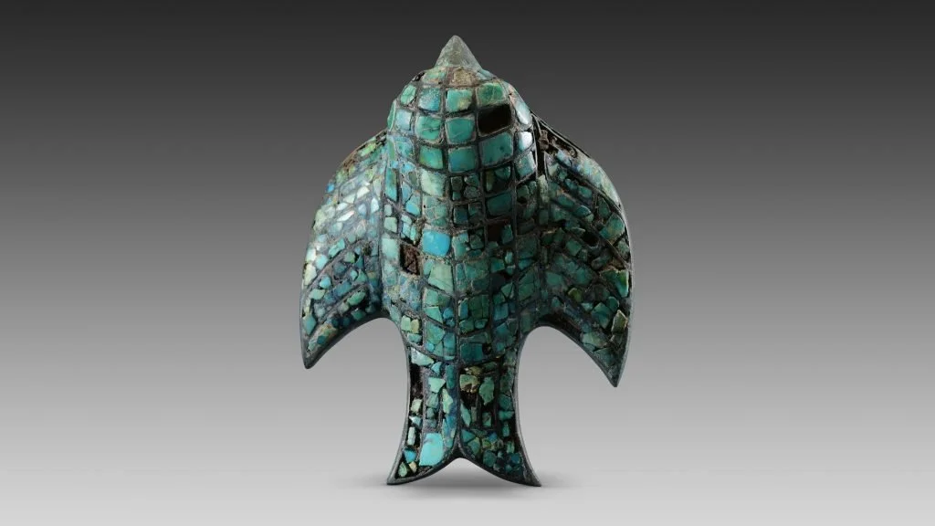 A turquoise-inlaid ornament unearthed in Shaanxi province. Image: Shaanxi Academy of Archaeology WeChat.